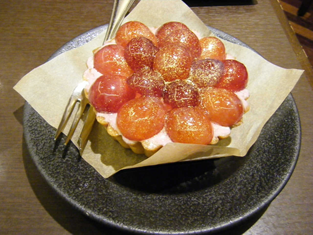 東京駅一番街にあるカフェです。休日の15時過ぎの利用でしたが、店内はほぼ満席でした。注文したのはグレープのタルトにアイスカフェラテ、アイスコーヒーの3点でお会計は約2,000円。場所が場所だけに仕方ないかもしれませんが、かなり高い印象を受けました。パンケーキがウリのようで、パンケーキを注文するとドリンクセットが選べるのですが、タルトではドリンクセットが選べないというシステムはイマイチですね。