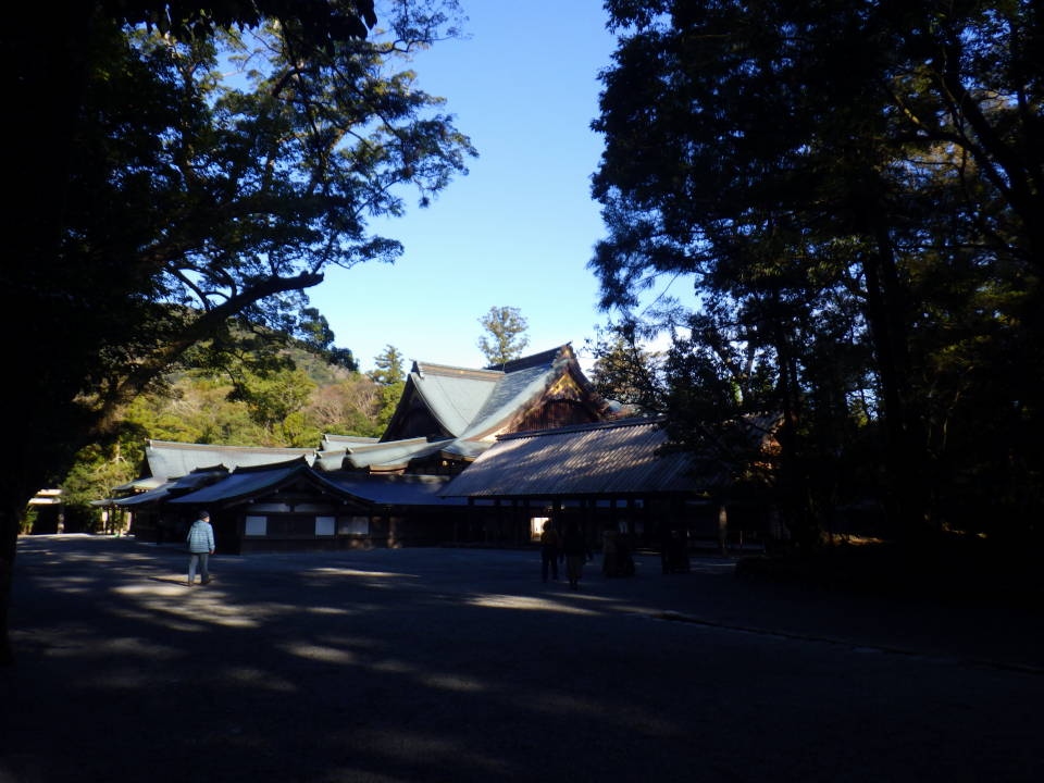 五十鈴川で身を清めた後、さらに白石の敷かれた道を歩いて行くと内宮神楽殿に着きました。中に入ると入母屋造りのとても重厚な建物が建てられていました。御祈祷をしていただくための建物のようで、雅楽を奉納できるということでした。
