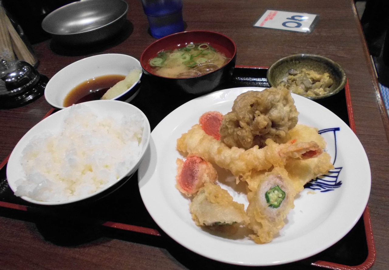 天ぷらは海老・舞茸・山芋・明太子・豚肉オクラ。