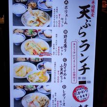 平日限定天ぷらランチは4種類、レディースセットを注文。