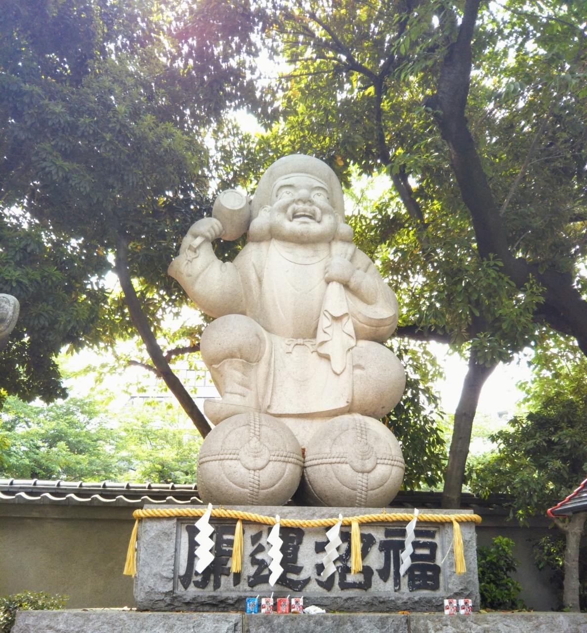 東京・神田に御鎮座されていらっしゃる「神田明神」の境内にある『神田明神 だいこく様尊像』は、とても大きな大黒天尊像です。昭和51年に高さ6,6m・重さ約30tの石造りで作られ、日本一の大黒天尊像として建立されたそうです。見上げる感じです。