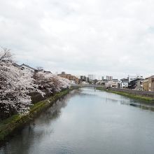 金沢の有名な観光スポットであるひがし茶屋街の近くを流れている大きな川です。最寄のバス停からひがし茶屋街に向かう途中にこの川を渡りました。4月上旬に訪れましたが、ちょうど桜の見ごろの時期で、浅野川大橋近くの浅野川の両岸には桜が咲いていました。