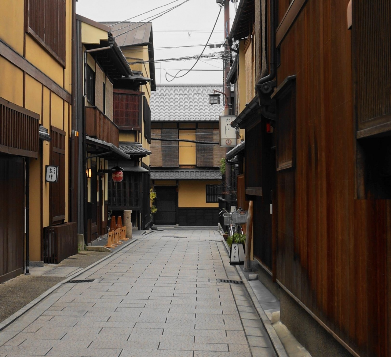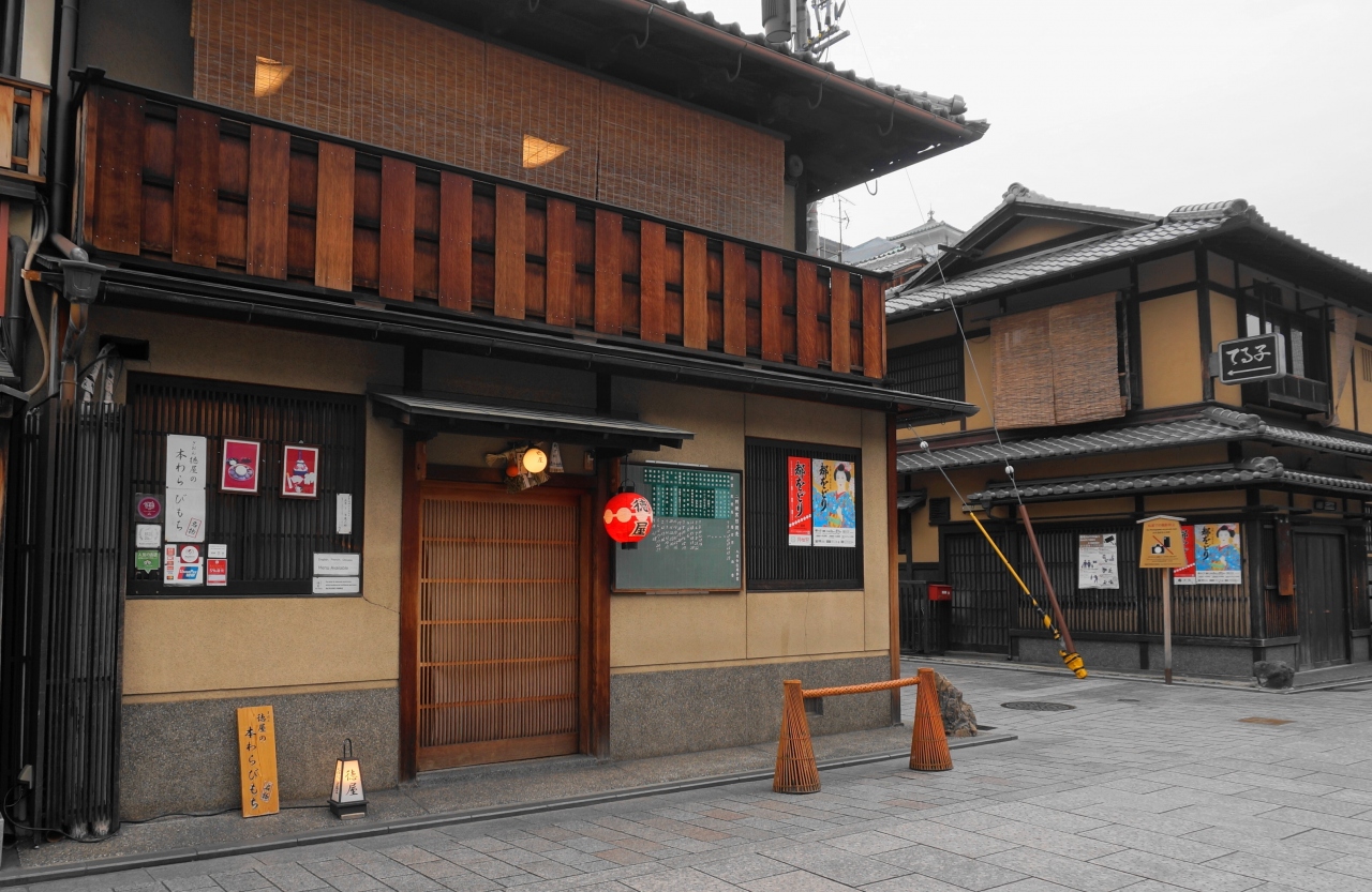 花見小路を久し振りに散策、近年には見られなかった閑散とした町並みです。