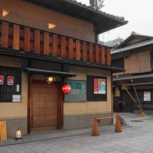 石畳が周りの建物を引き立てて、京らしい風情あふれる景観。