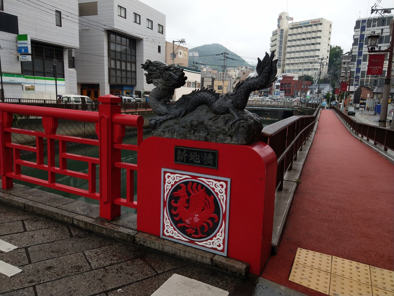 水の色は緑がかっていて、澱んでいることはいなめませんが、この小さな川にかかる橋、例えば新地中華街を結ぶ新地橋であったり、は長崎らしい景観を形成していると思います。