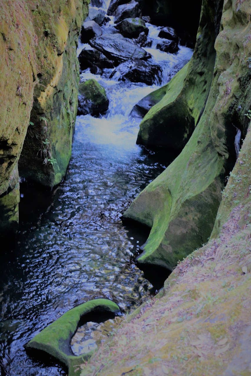 ポットホールの坑の周囲は苔むし、その雰囲気はちょっと神秘的。