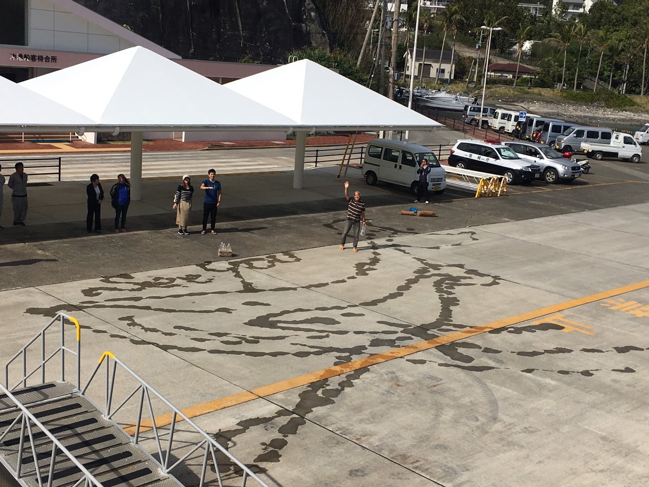 ははじま丸が出航するとき鯨ののぼりで見送りをしたり、カカを鳴らしてくれたり、鯨の絵をかいてくれたりします。