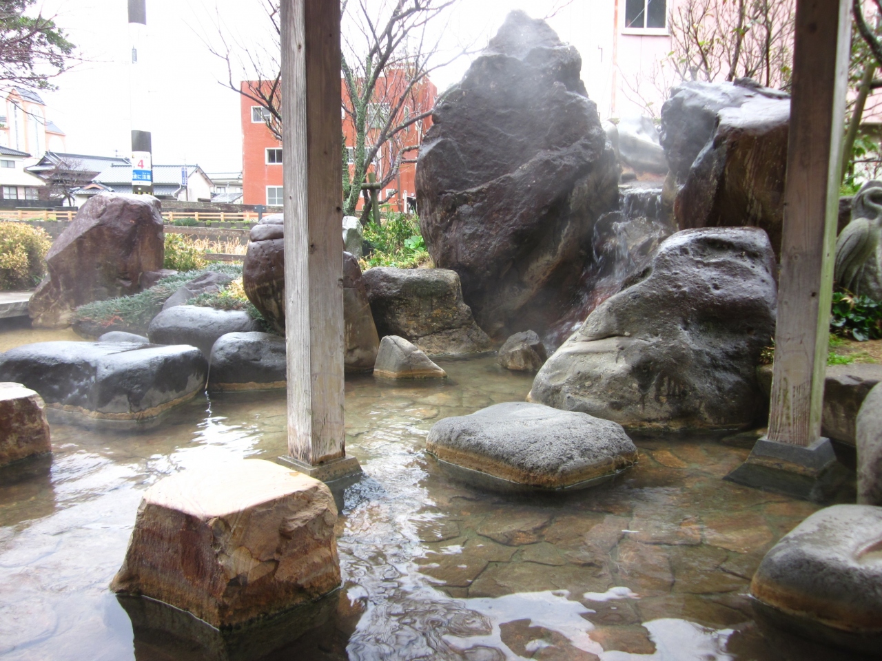 それを可能にしているのが豊富な湯量~、滾々と湧き出る湯があるからこそどこの宿も掛け流しで、無料の五足の足湯も掛け流しの湯が楽しめるのですね。