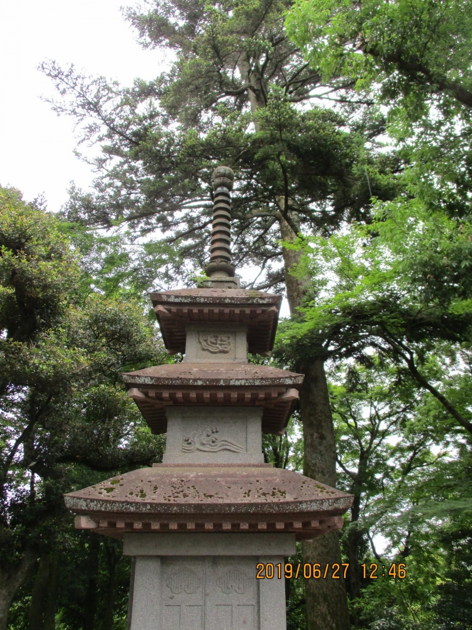 兼六園の霞ヶ池と瓢池の間に設けられたあ3代藩主が作った高さ9メートルの栄螺山の山頂にたてられた三重の宝塔です。12代藩主の供養塔として建てられたものといわれていますが、それほど大きな塔ではありません。近くには、避雨亭と呼ばれる御亭もあります。
