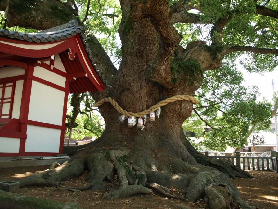 南大門北と五社明神社のかたわらにある2株の楠は、いずれも樹齢千数百年と伝え、お大師さまの幼少の頃、そして善通寺の創建当時を偲ばせる大木です。「善通寺境内の大グス」として香川県の天然記念物に指定されています。