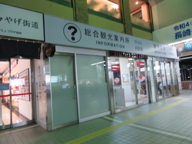 長崎駅にある一角に、大きく「総合観光案内所」と入口の上に書いてあります。中に入ってみると、テイクアウトのコーヒーショップの片隅にカウンターを構えておられます。よって、そのカウンターにスタッフが座っておられます。外海の行き方など丁寧に教えて下さいました。