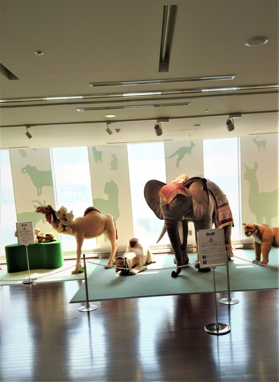 新千歳空港でめずらしく次の予定まで時間があって、ターミナルビルを全部歩いて回って施設を見てみた。その時国内線ターミナルビルと国際線ターミナルビルの連絡通路の両側に大きなぬいぐるみが展示されていたのに気が付いた。ドイツの有名な縫いぐるみメーカーの展示スペースだった。
