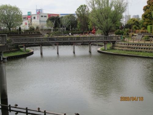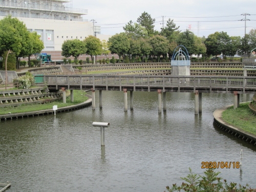 松ヶ崎中央公園は面積約1.3haの街区公園で、様々な木々によって季節の移り変わりを体感しながら、親水景観を楽しめる公園です。園内の池は雨水調整池』としての役割を兼ね備えています。下流河川の洪水を防ぐために、付近に降った雨水を一度この池に溜めて、時間をかけて少しづつ放流します。そのため、大雨の際には一時的に池の水位が上昇しますので、ご注意ください。