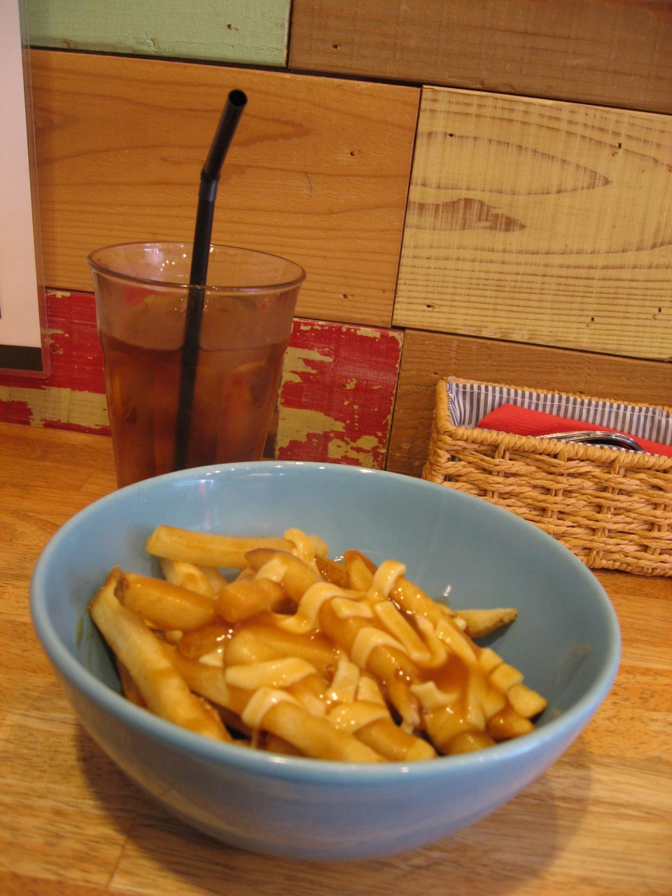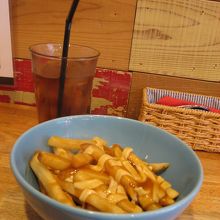 揚げたてのポテトのグレイビーソースとチーズをかけてます。