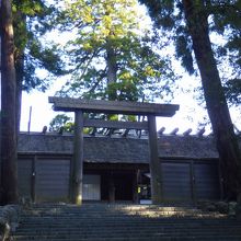 正宮でお参りをして出口の階段を降り、正宮の下を時計回りに戻りながらゆるやかな坂を上っていくと、荒祭宮(あらまつりのみや)に着きました。天照大御神がご神威をあらわされているそうです。ここでもあらためてお参りさせていただきました。