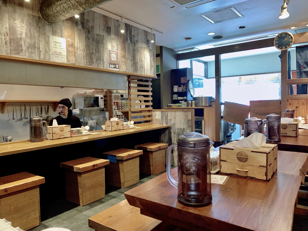 オープンして間がないニューカマー店に再訪してきましたよー店内はカウンター席とテーブル席とあり20名くらいのキャパですがコロナの影響でお昼時でも閑散としています・・・緊急非常事態宣言から2週間!外出自粛が更に増してきて飲食店は大変です~1日も早く収束することを願って我らは少しでも多くラーメン食べに行って応援をするしかない!ですね。