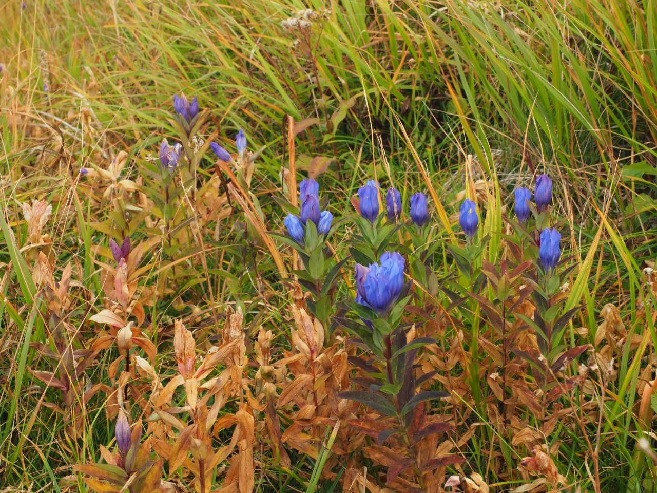9月下旬に散策しました。見返り峠まで登ればあとは傾斜も少なく歩きやすい木道が敷かれています。眺望がいいのは八幡沼周辺ですが、登山道沿いにはウメバチソウやリンドウが咲き楽しめました。そして周りには黄金色に色づいた草紅葉が美しい。コースもいくつかあるので、時間や体力に合わせて気軽に散策できます。