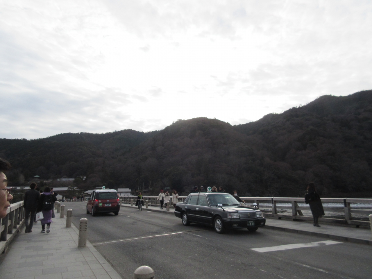 嵐山といえば「渡月橋」、嵐山ののシンボル渡月橋、風情があります。亀山上皇が橋の上を動く月を眺めて「くまなき月の渡るに似る」と言ったことから渡月橋と名付けられたとされます。いつも人通りが多いです、橋の上から眺める嵐山、いいですね。