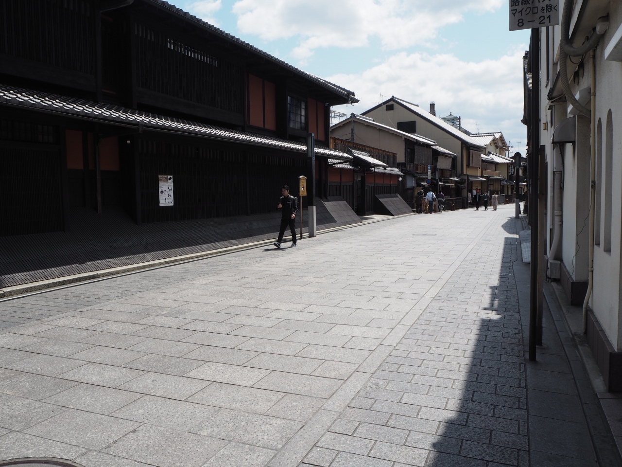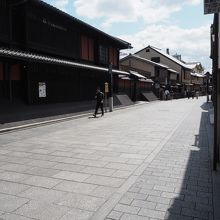 平日の午前中に訪れたましたが、観光客も少なく、歩いている人は少なかったです。きれいに整備された石畳の道と京都らしい木造造りの家並みと、観光客にとっては京都を感じられる場所です。人通りの少ない道は映画のセットのような雰囲気すらありました。最近この通りでの撮影は禁止になっているようで、四条通りから撮影するしかないようです。