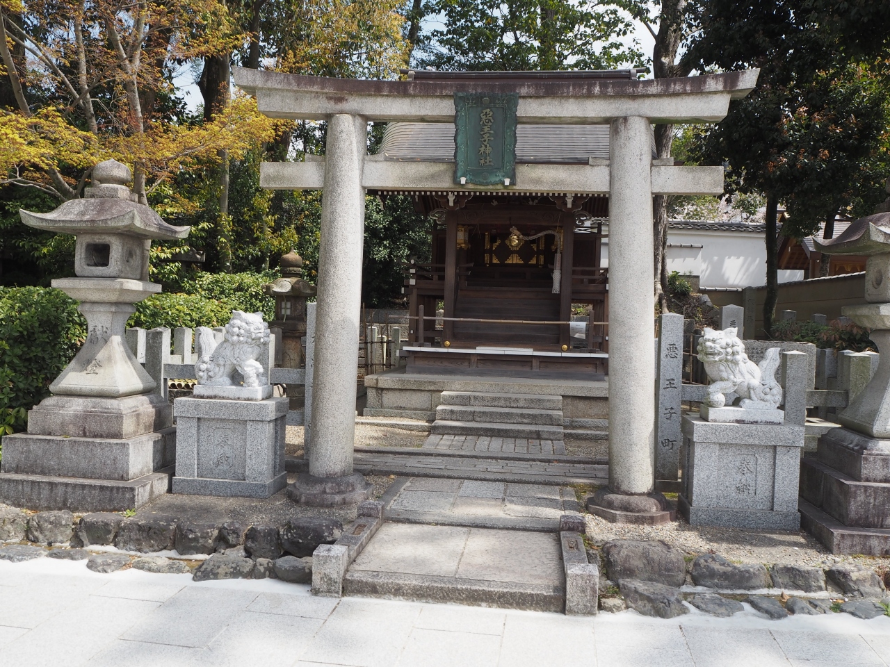 悪王子神社は八坂神社の境内にある社です。神社には鳥居と両側には狛犬、灯篭があります。短いですが参道があり、その奥に社があります。八坂神社に多くある社の中では立派な社です。悪王子というのは素戔嗚尊を祀ったもので、悪というのは力が強い地味だということです。