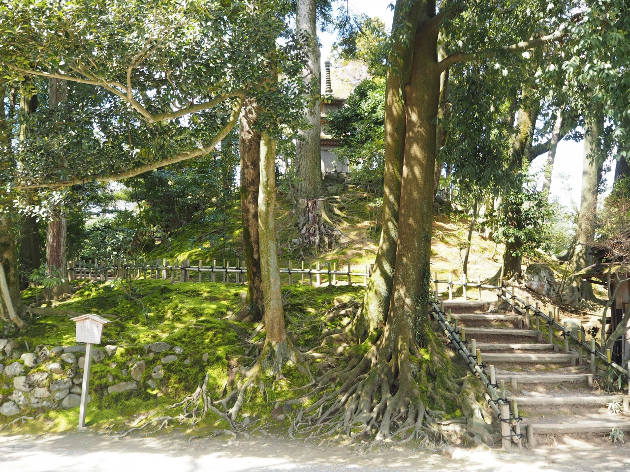兼六園のメインの池である霞が池のほとりにあるこじんまりとした山です。山には登れるように道が作られていて、くるくるとまわりながら登っていきました。木々がおいしげっている山で、山の上には塔のようなものがありました。