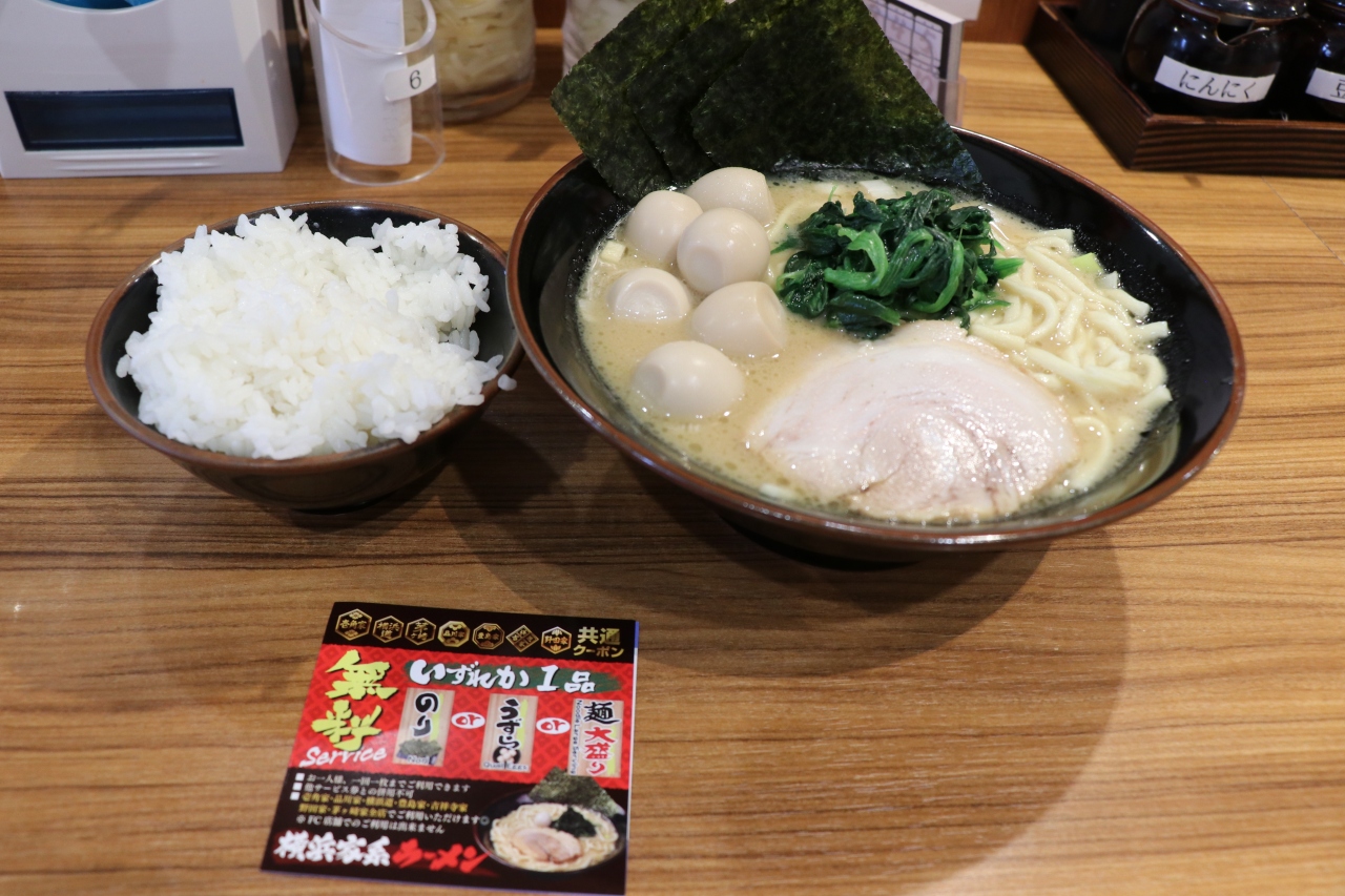 ラーメンやスープについては他の家系ラーメンと同様に、味の濃さ・脂の量・麺の硬さをそれぞれ3択から選べるので好みのラーメンに仕上げることができます。ライスは開店から18時まで無料で食べ放題なのでお腹いっぱい食べることができて満足でした。店内はカウンターが15席分ほど、テーブルが5,6個あります。