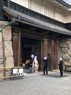 松本の黒門の前で、ウェディング撮影をみました。桜の時期なので、とても素敵でした。