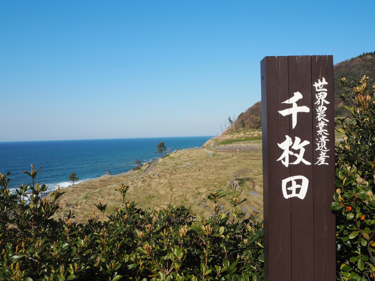 能登の有名な景勝地のひとつです。千枚田ポケットパークに車をとめて、そこから展望台や田んぼの近くまで降りていける階段がありました。時期的にちょうど田んぼに水はりをしていたようで、作業をしている方々がいらっしゃいました。