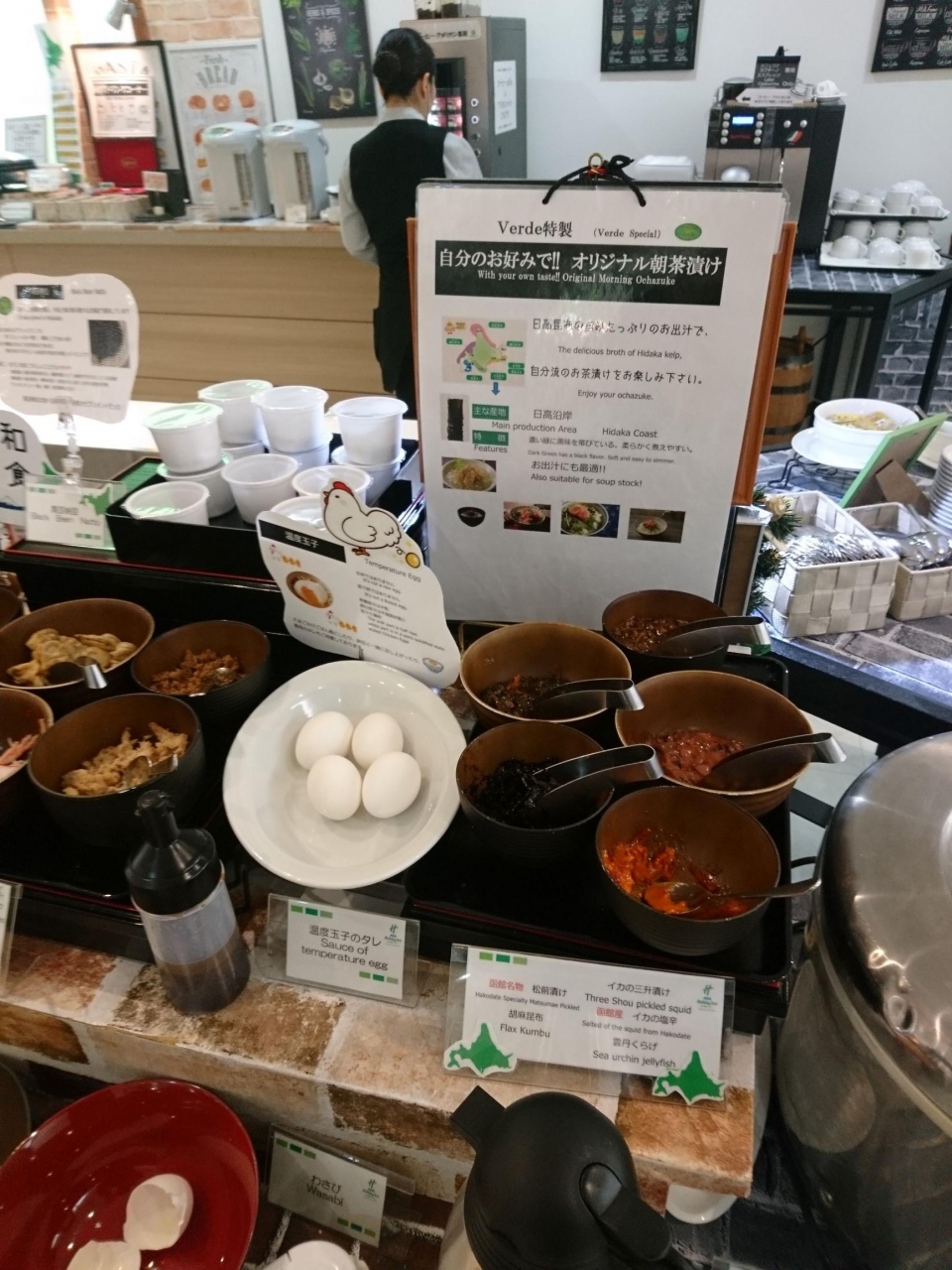 札幌の歓楽街すすきのにある中堅シティーホテルANAホリデイ・イン札幌すすきのレストラン。朝食の会場に使われる。お店は洋食レストランだが、朝食ビュッフェは地元北海道産の食材を使った和風メニューも充実している。