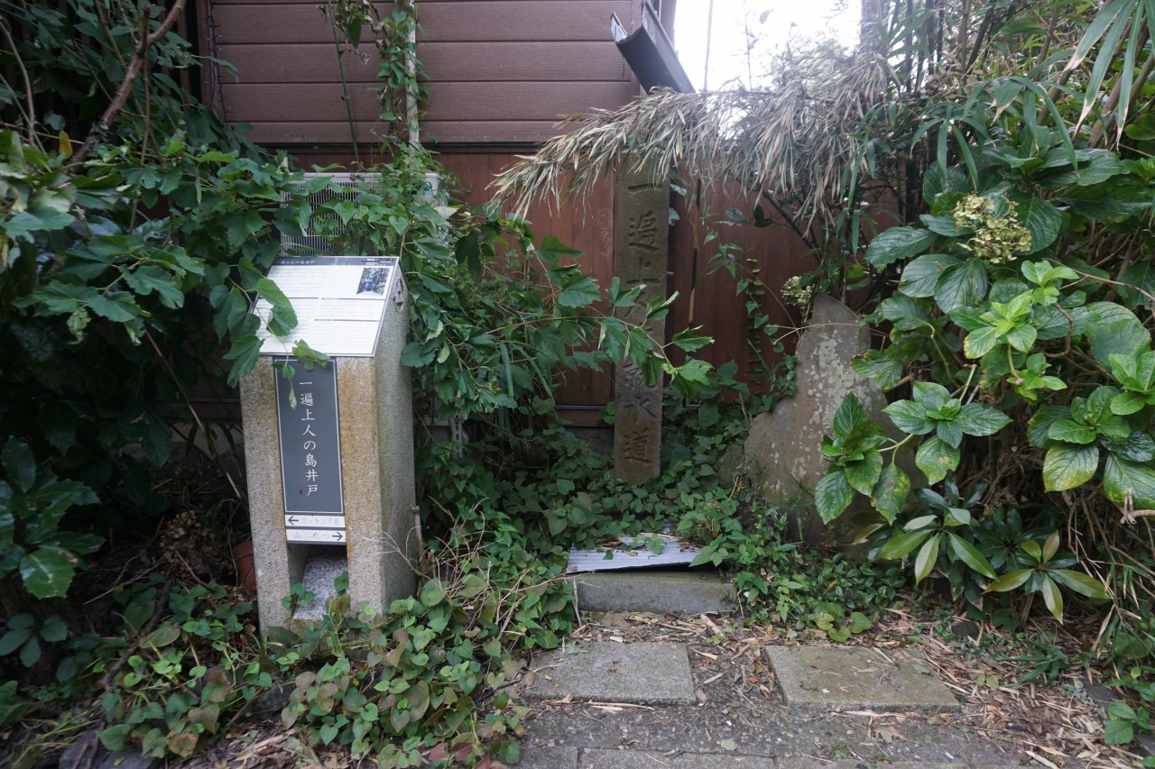 一遍上人成就水道は、江の島大師から山ふたつの方に少し進んだ道の脇。飲料水に窮する島民を助けるために一遍上人が掘り当てた井戸と伝えられるもの。説明文の付いた小さな碑が建っています。小さな島である江の島が水に困っていたというのは考えてみれば当然のことかもしれません。
