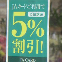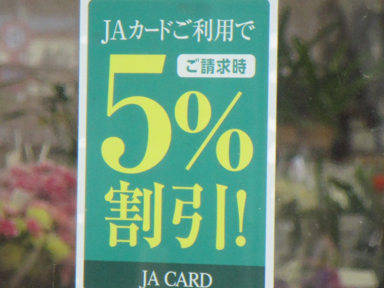 農協のJAカードを使うと5%割引になるそうですが、その他のクレジットカードも利用はできます。