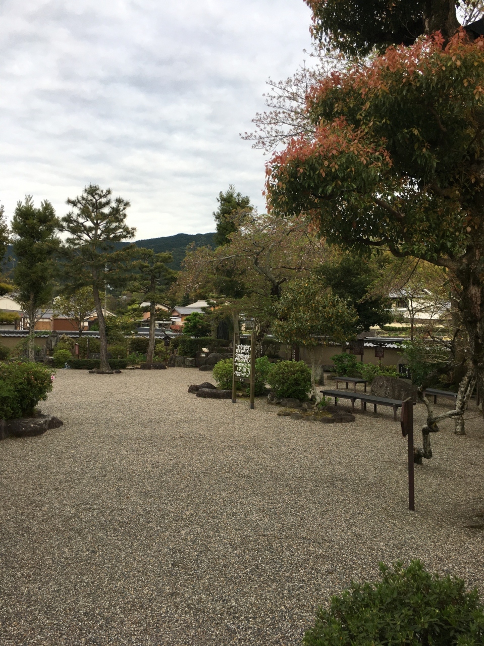 四方を壁で囲っているので城壁のようにも見えました。境内の地面は、小石が散りばめられ木々が庭園の乃ように植わり、大きな鐘楼がありました。ベンチもあったので座って休みました。駐車場もあり、バス停が目の前にあります。