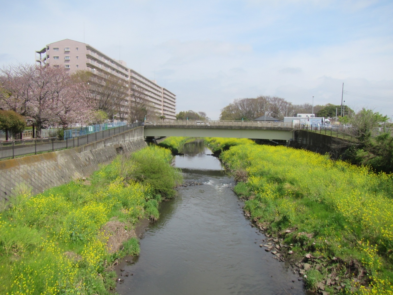 春に遊ぶ川べりの散策