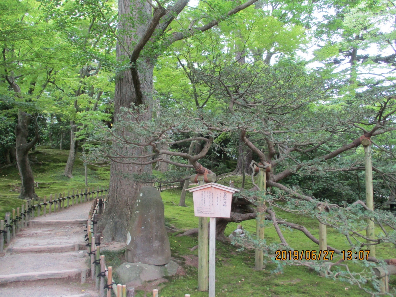 兼六園のメインゲート桂坂口からは、最も遠い山崎山のふもとにたっています。石碑に書かれた文字はほとんど読めませんでしたが、説明板に芭蕉の句碑であるとかかれていました。芭蕉が、金沢に立ち寄ったとき、詠んだ句が記されたものだそうです。この句碑は、あまり目立たず、句碑の説明板がなければ、見過ごしてしまうでしょう。
