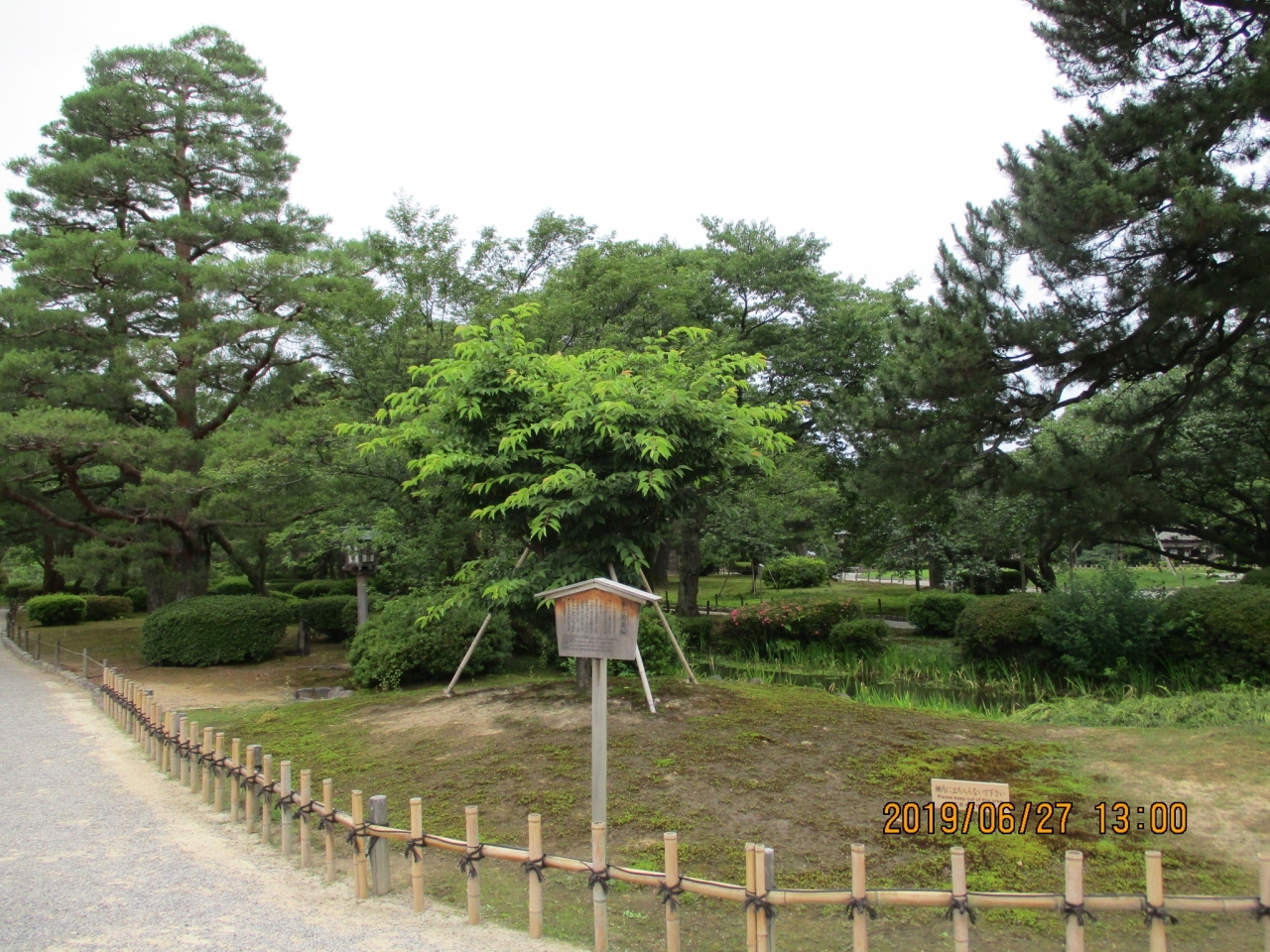 兼六園千歳台のはずれにあります。比較的小さな桜の木ですが、非常に珍しい品種ということで、天然記念物に指定されたといわれています。この桜は、一つの花に花びらが300枚ほどついており、菊の花をおもわせることから、このようによばれるようです。私が訪れたときは、桜のシーズンがおわり、新緑の頃で、花を楽しむことができず、残念でした。