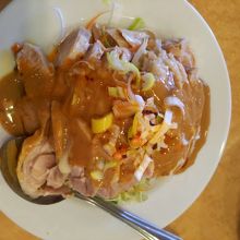 半熟でおいしかった。人気のようで、山のように積まれた煮卵はあっという間になくなってしまいました。
