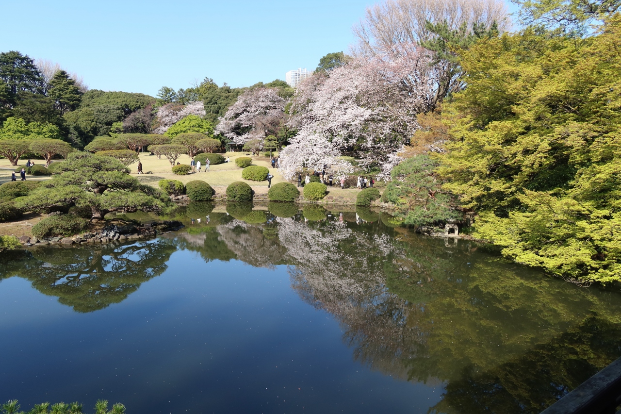 旧御涼亭から見る桜の花咲く景色も良いですし、池越しに旧御涼亭を眺めるのも風流です。