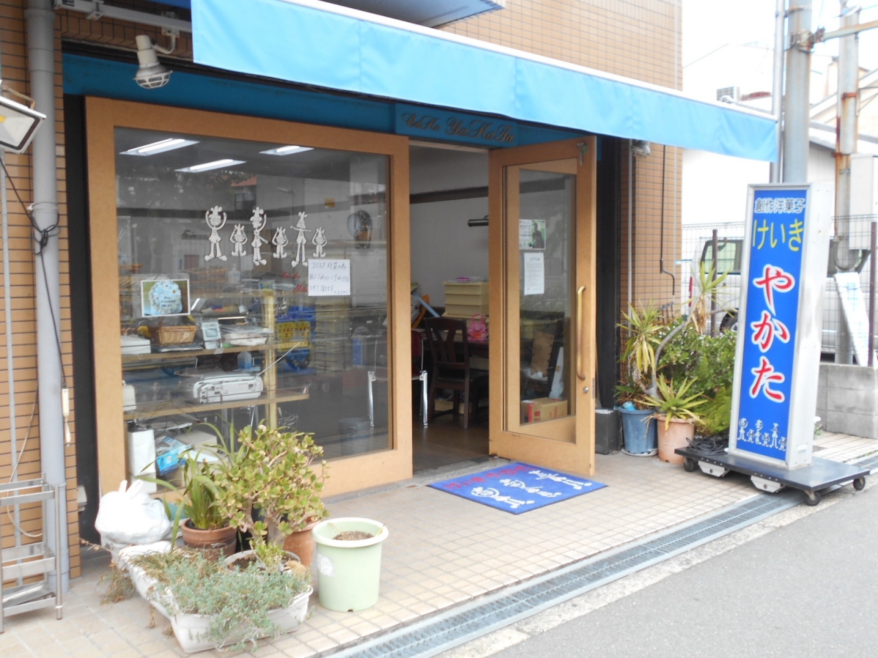新幹線の高架下沿いの道に面した洋菓子店です。