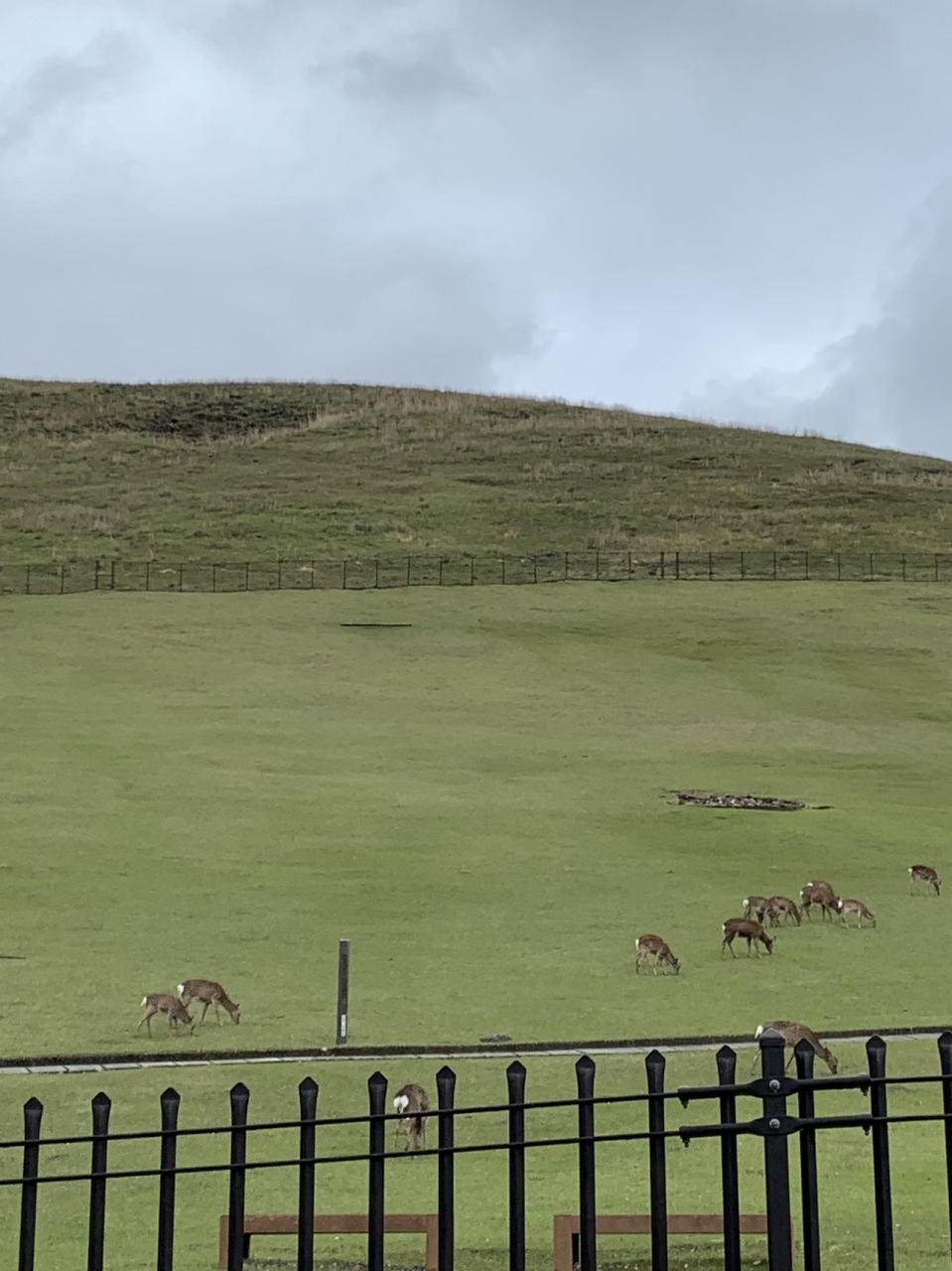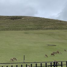 鹿が草をついばんでいて見ていて癒されます。
