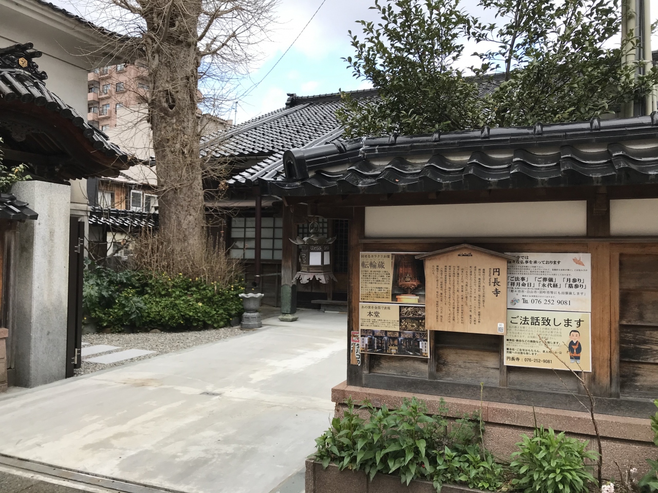 ひがし茶屋街に続く通り沿いにありました。たまたま通りかかったので立ち寄りました。こちらのお寺は、、前田家3代藩主前田利常公が卯辰山周辺で鷹狩りを行う際に、休憩所として利用していたという歴史があるのだそうです。入り口には開設の看板が設置されていました。