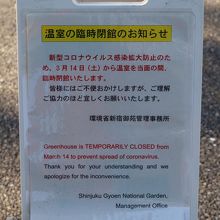 新宿御苑の大木戸門入口を入って右手に行った所にガラスでできた大きな建物があります。これが新宿御苑大温室です。新宿御苑の入場料だけで入れる温室なのですが、訪れたときは新型コロナウィルスの影響で閉館され、中を見られないという不運。事前に調べておけば良かったです。