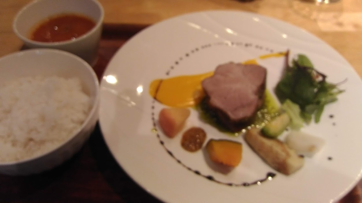 ランチは、チキン、ポーク、魚から選ぶ仕組み。ローストポークを選びました。塊でローストしてあるのをカットして盛り付けるので待ち時間は少なくすみます。厚切りの肉ときれいにアレンジした野菜が絶妙、これはお得。マスター一人で営業なので、ランチタイムは時間をずらしていくのがお薦め。