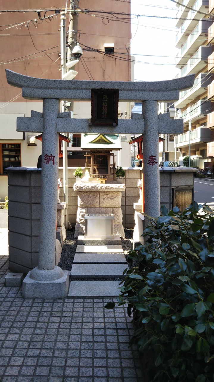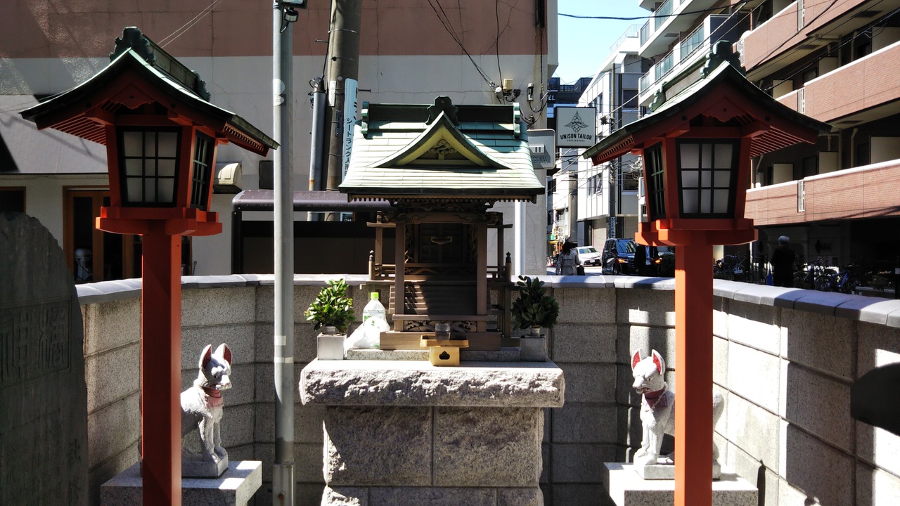 まさか、ビルの敷地内と言える一角にこじんまりと在るお社が4トラで口コミ対象になっているとは。それくらい小さな稲荷社です。