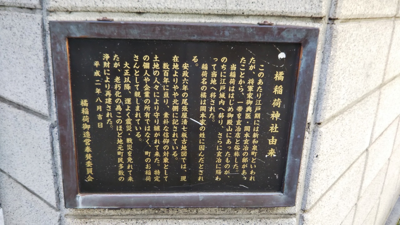 橘は岡本玄冶の本名で、其処から橘稲荷と名付けられました。