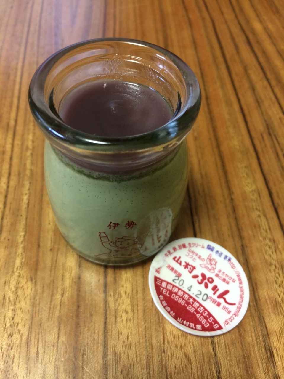 昔懐かしい瓶入りの牛乳やプリン、ヨーグルトが人気の伊勢の牛乳屋、山村乳業さん。ノーマルのプリンは、優しい味で美味しいです。今回は期間限定味の抹茶味を食べました。鮮やかな緑のプリンの上にこしあんがのっていて美味しかったです。