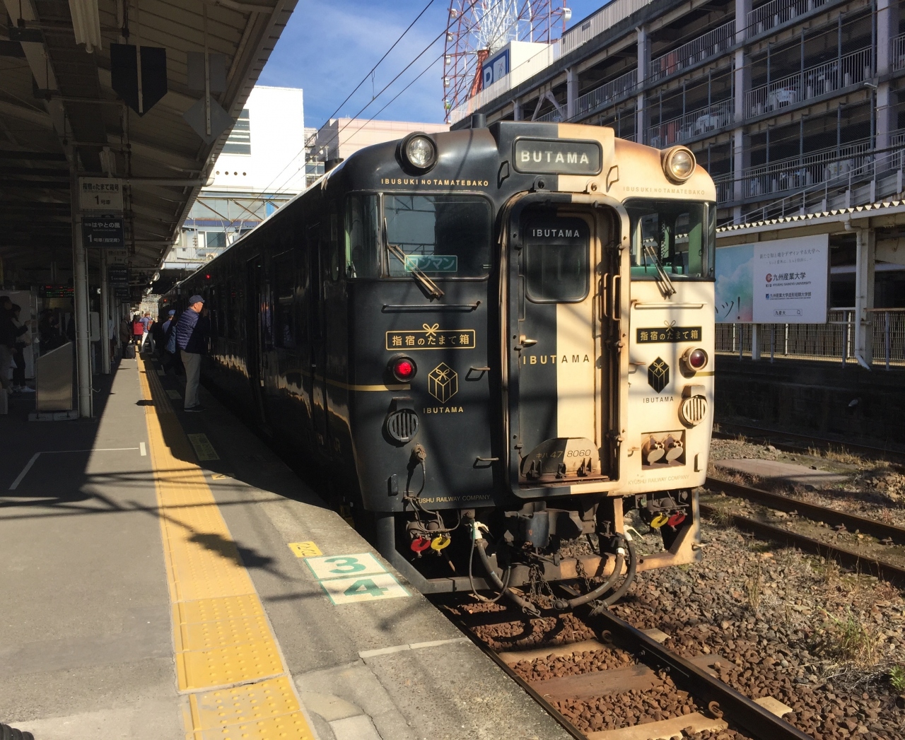 指宿枕崎線の観光列車で、鹿児島中央~指宿を約50分で結びます。指宿行きでは、車窓左側に鹿児島湾や桜島を望めるので、予約するときは左側をオススメします。また、車内販売の黒ごまぷりん(400円)がとても美味しいので是非購入してみてください。車内販売は現金のみです。ご注意ください。