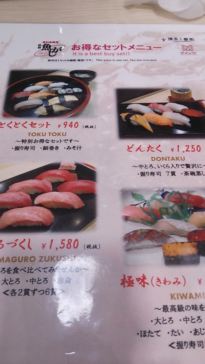JR博多駅の小倉方高架下にある「マイング」という商業施設の中にある回転寿司屋で、2019年12月31日のランチに利用しました。