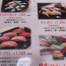 赤身・えび・たこ・穴子等9種のにぎりの他、3品の巻物、さらに味噌汁もついていて、比較的リーズナブルに感じました。