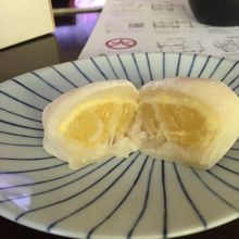 いつも店の前には行列が絶えない店で前から気になっていました。土曜日のおやつタイムに日向夏と完熟バインの大福を買いました。大福を半分にカットすると中には美味しそうな日向夏とパイナップルの果肉が。あっという間に美味しく頂きました。