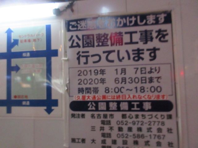 名古屋にある大きな公園です。久屋大通という大きな道路の中央を利用した公園ですので細長い感じで、2キロほどあるそうです。その一部、栄の周辺は現在工事中で、中に入れないようになっていました。なので、テレビ塔も改修工事をしていては入れませんでした。夏にはリニューアルオープンだそうですので楽しみですね。
